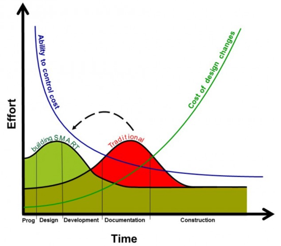 - Moving the detailed design, modeling and budgeting to early in the planning process does not appreciably increase the overall effort but does make it possible to optimize the building’s expected performance, based on owner’s project requirements, during the time when the ability to control costs is high and the cost of changes is low. This is the first step toward achieving evidence-based performance.