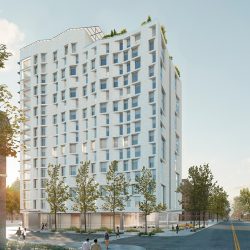 The winning RFP proposal for NYCHA’s Sotomayor Houses in the Soundview section of the Bronx (and named in honor of the Justice Sonia Sotomayor’s mother, Celina Baez) this 16-story building will offer affordable senior units.